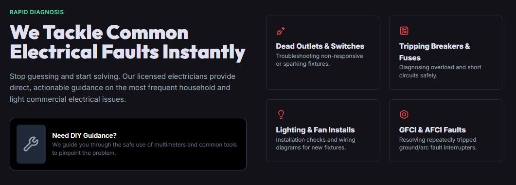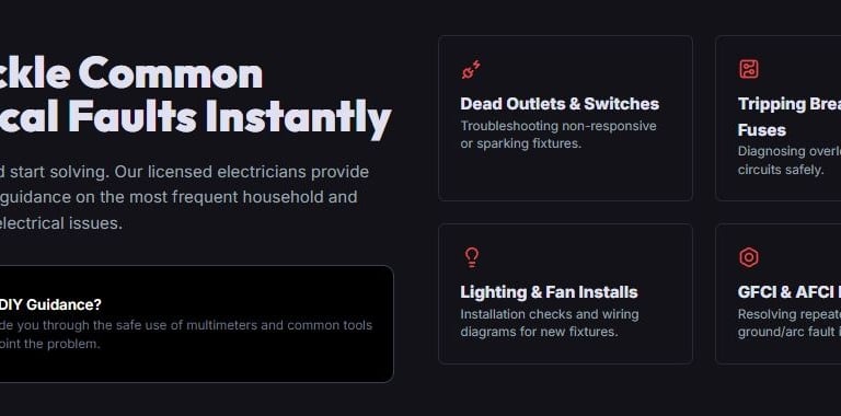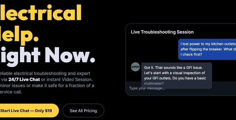 Fast, reliable electrical troubleshooting and expert advice via 24/7 Live Chat or instant Video Session. Solve minor issues or make it safe for a fraction of a local service call.