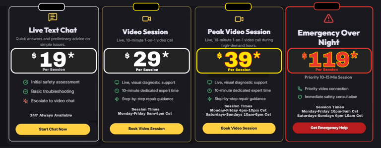 *Chat service purchase is required to begin troubleshooting. Video sessions are add-ons. Electrician availability for video chat may vary based on time.